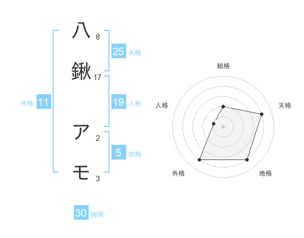八鍬 アモさんを姓名の画数から五運を鑑定
