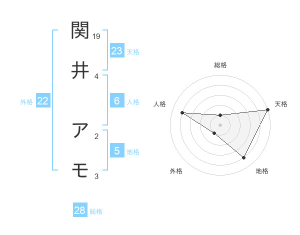 関井 アモさんの天格は23画の5点!