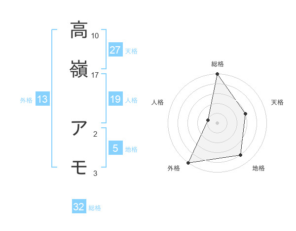 高嶺 アモさんを姓名の画数から五運を鑑定