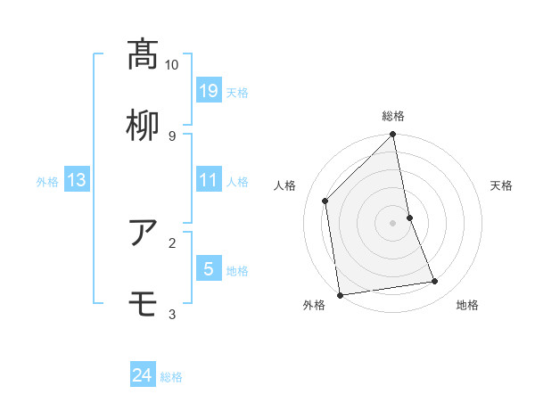髙柳 アモさんの外格は13画の5点!