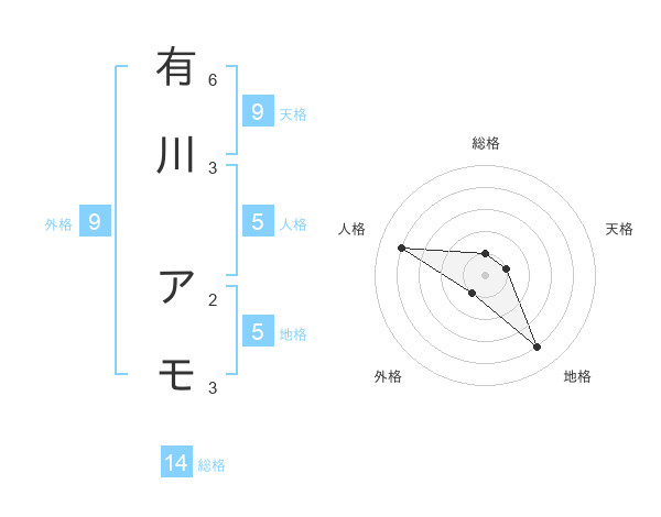 有川 アモさんの天格は9画の1点!