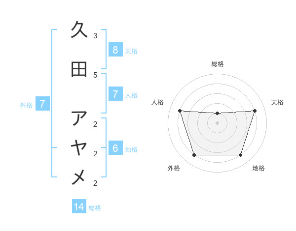 久田 アヤメさんを姓名の画数から五運を鑑定
