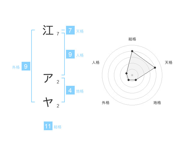 江 アヤさんの総格は11画の4点!