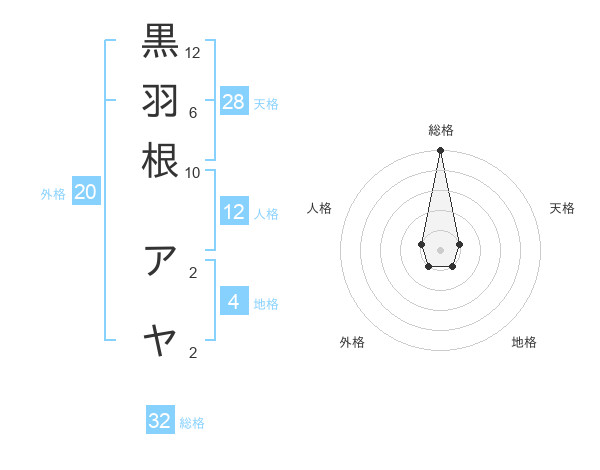 黒羽根 アヤさんの総格は32画の5点!