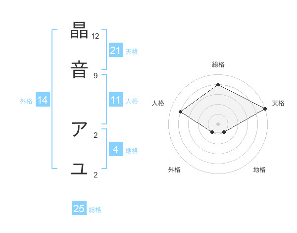 晶音 アユさんの天格は21画の5点!