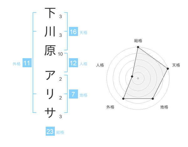 下川原 アリサさんの総格は23画の5点!