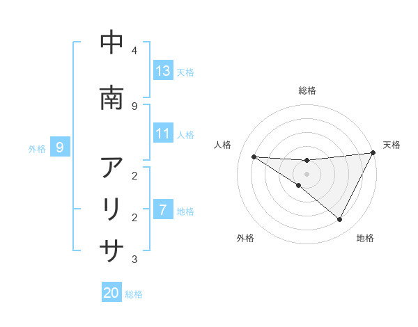 中南 アリサさんの天格は13画の5点!