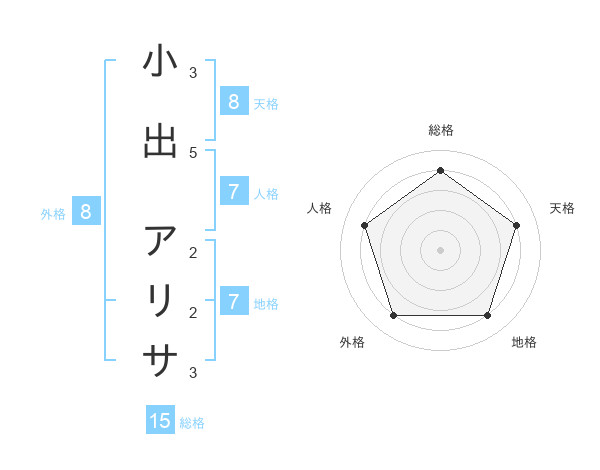小出 アリサさんの外格は8画の4点!