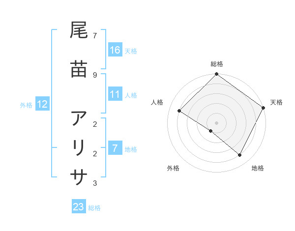 尾苗 アリサさんを姓名の画数から五運を鑑定