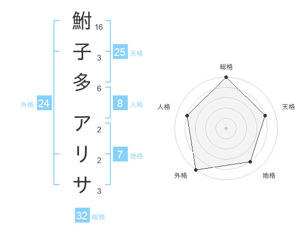 鮒子多 アリサさんを姓名の画数から五運を鑑定