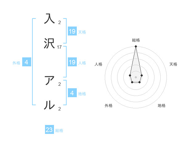 入沢 アルさんの総格は23画の5点!