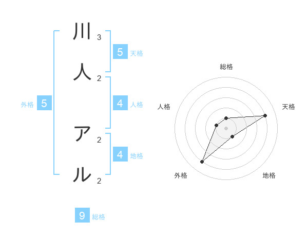 川人 アルさんの天格は5画の4点!