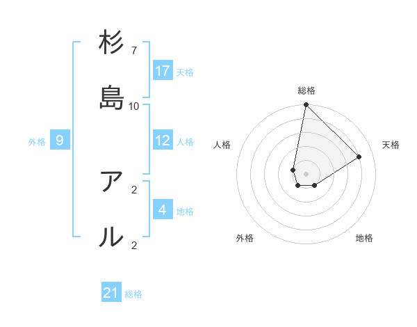 杉島 アルさんの総格は21画の5点!