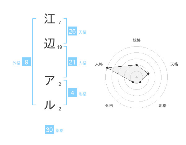 江辺 アルさんの総格は30画の2点!