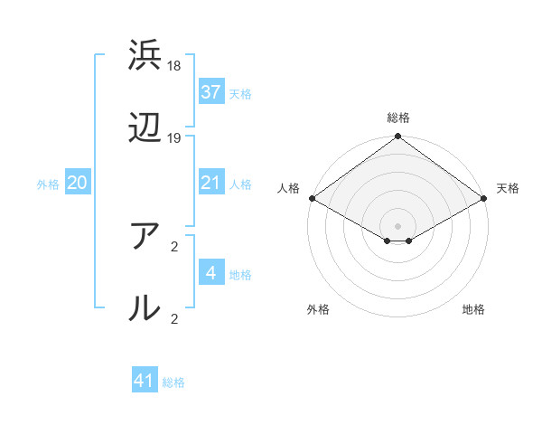 浜辺 アルさんを姓名の画数から五運を鑑定