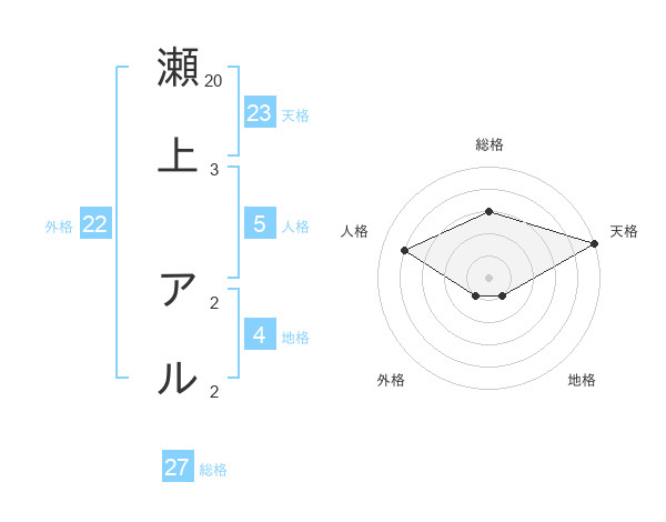 瀬上 アルさんを姓名の画数から五運を鑑定
