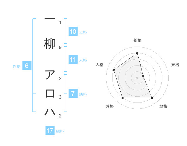 一柳 アロハさんの総格は17画の4点!