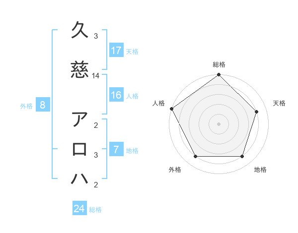久慈 アロハさんの天格は17画の4点!