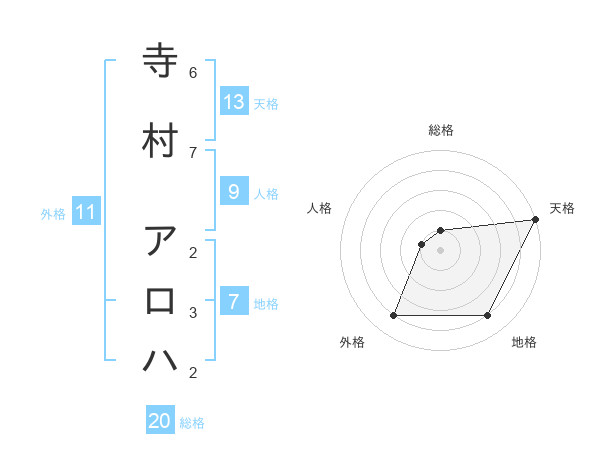 寺村 アロハさんを姓名の画数から五運を鑑定