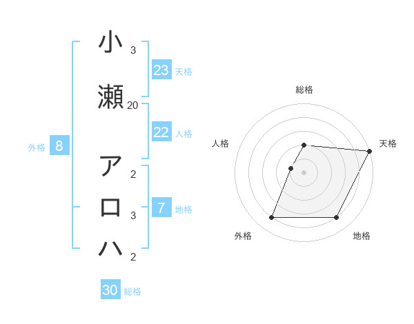 小瀬 アロハさんを姓名の画数から五運を鑑定