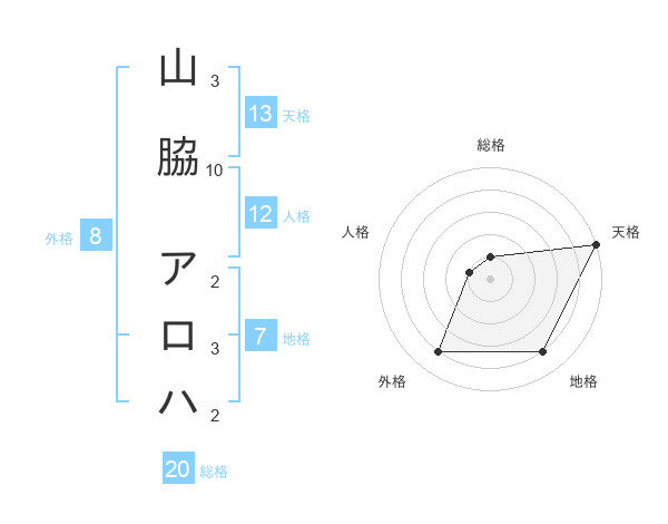 山脇 アロハさんを姓名の画数から五運を鑑定