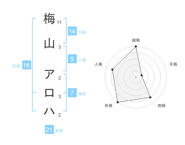 梅山 アロハさんを姓名の画数から五運を鑑定