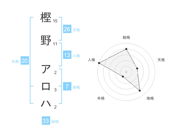 樫野 アロハさんの天格は26画の2点!