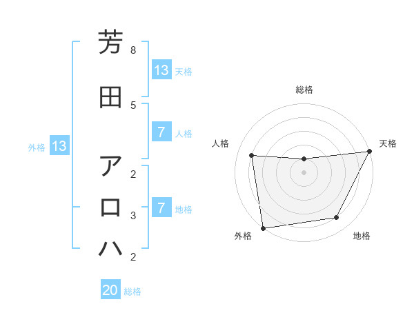 芳田 アロハさんを姓名の画数から五運を鑑定
