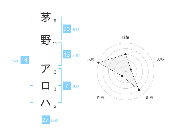 茅野 アロハさんの総格は27画の3点!