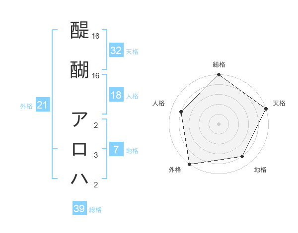 醍醐 アロハさんの外格は21画の5点!