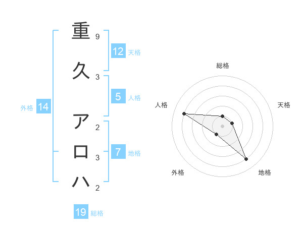 重久 アロハさんの天格は12画の1点!