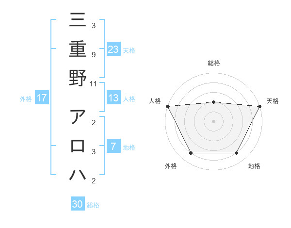 三重野 アロハさんを姓名の画数から五運を鑑定