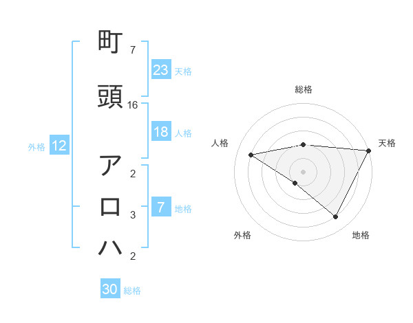 町頭 アロハさんを姓名の画数から五運を鑑定