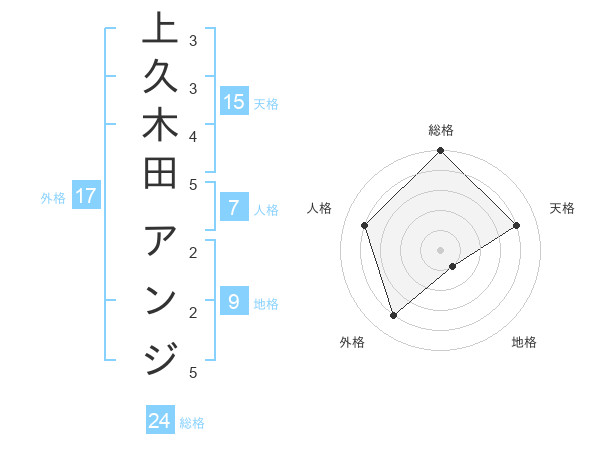 上久木田 アンジさんを姓名の画数から五運を鑑定
