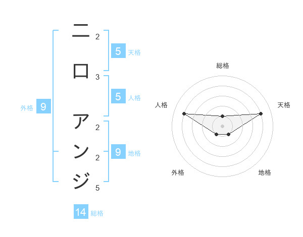 二口 アンジさんの天格は5画の4点!