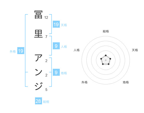 冨里 アンジさんの外格は19画の1点!