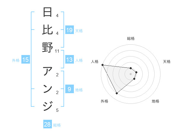 日比野 アンジさんを姓名の画数から五運を鑑定