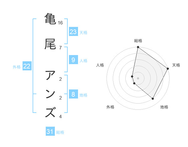 亀尾 アンズさんの天格は23画の5点!