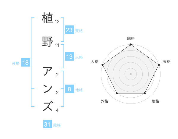 植野 アンズさんの総格は31画の5点!