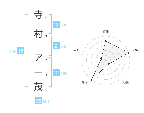 寺村 アー茂さんの天格は13画の5点!