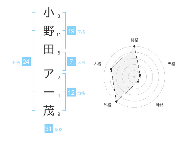 小野田 アー茂さんを姓名の画数から五運を鑑定