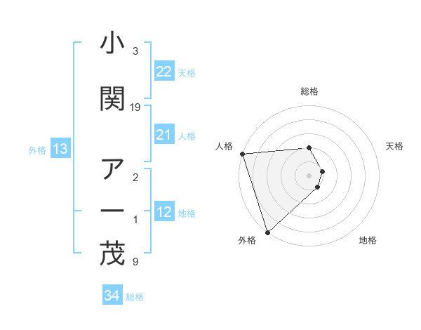 小関 アー茂さんを姓名の画数から五運を鑑定
