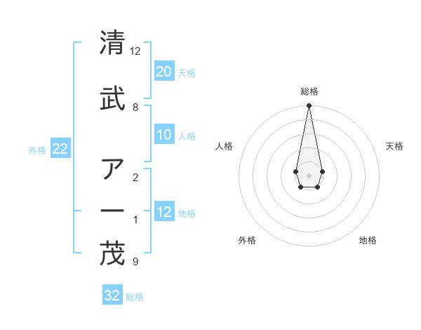 清武 アー茂さんを姓名の画数から五運を鑑定