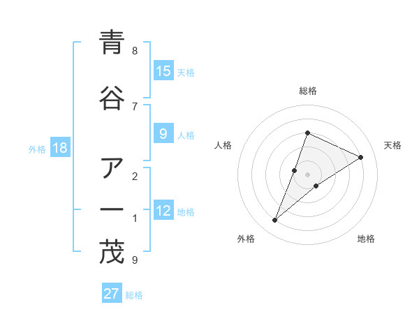 青谷 アー茂さんを姓名の画数から五運を鑑定