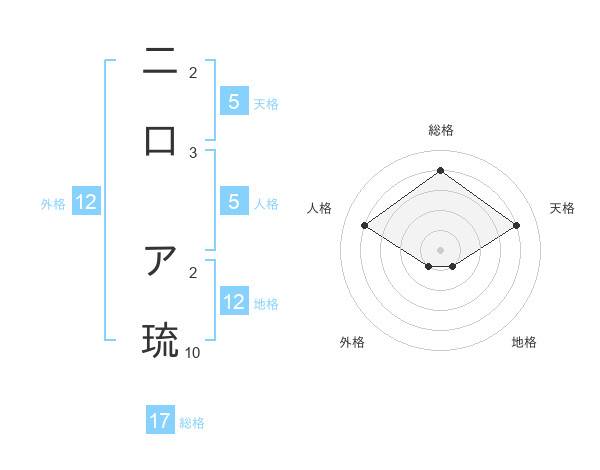二口 ア琉さんの総格は17画の4点!
