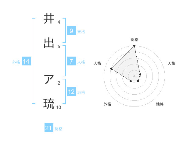 井出 ア琉さんの総格は21画の5点!