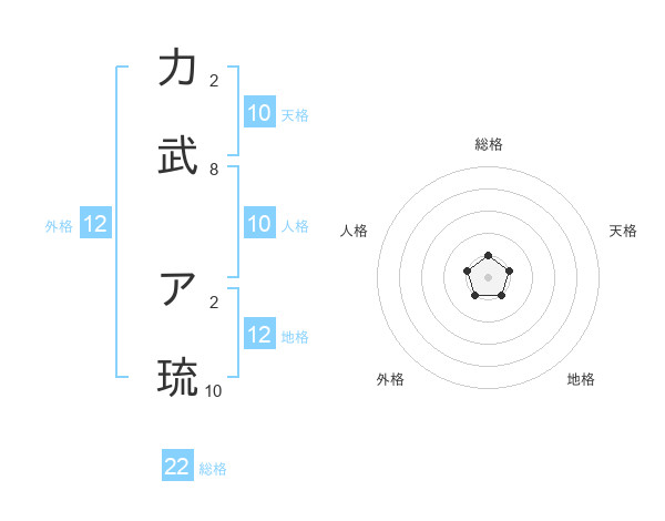 力武 ア琉さんを姓名の画数から五運を鑑定