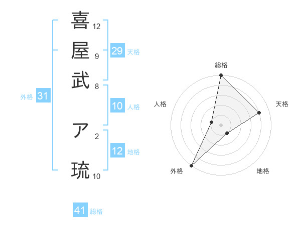 喜屋武 ア琉さんを姓名の画数から五運を鑑定