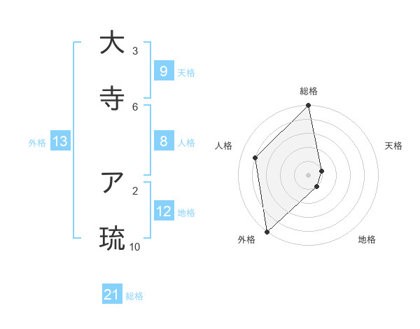 大寺 ア琉さんを姓名の画数から五運を鑑定