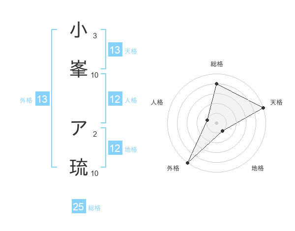 小峯 ア琉さんの外格は13画の5点!